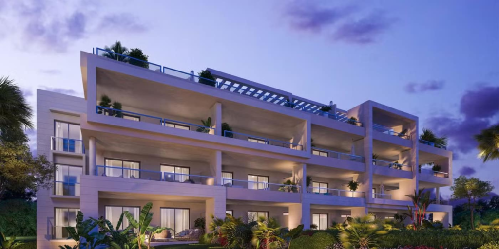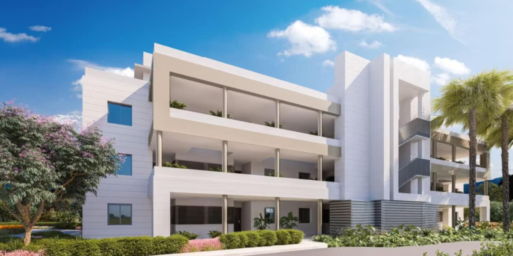 New residential in Mijas Costa, Malaga. The private urbanization has 54 homes with 2 and 3 bedrooms distributed in 3 blocks, 3 stories high, including penthouses with large terraces that will enjoy magnificent views of the golf course. Very bright homes with spacious living rooms with integrated kitchens, contemporary design and created to enjoy privacy and proximity to golf. The common areas have swimming pools and well-kept gardens to enjoy the wonderful atmosphere of the area.