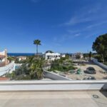 Upstairs, a mezzanine landing adds to the home’s open feel. The main bedroom features an en-suite bathroom, built-in wardrobes, and access to a private 11.7 m² terrace with lovely sea views—an ideal spot to enjoy your morning coffee. A second double bedroom also enjoys sea views and has access to a small balcony. A second bathroom completes this level.