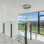 The main living level is a masterclass in contemporary design, featuring an expansive open-plan living and dining area, complemented by a state-of-the-art kitchen equipped with high-end appliances. Floor-to-ceiling glass sliding doors flood the space with natural light, creating a harmonious blend between the interior and the spectacular coastline beyond.
