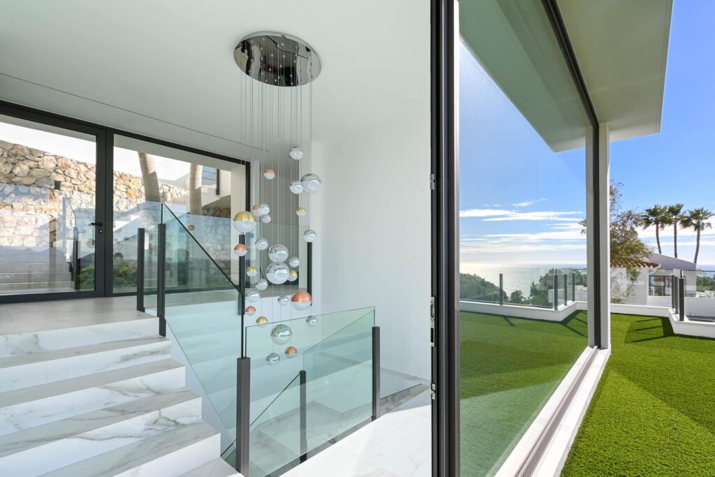 The first floor boasts four spacious en-suite bedrooms, each crafted with meticulous attention to detail. The primary suite enjoys direct access to a private terrace to enjoy the wonderful sea views.