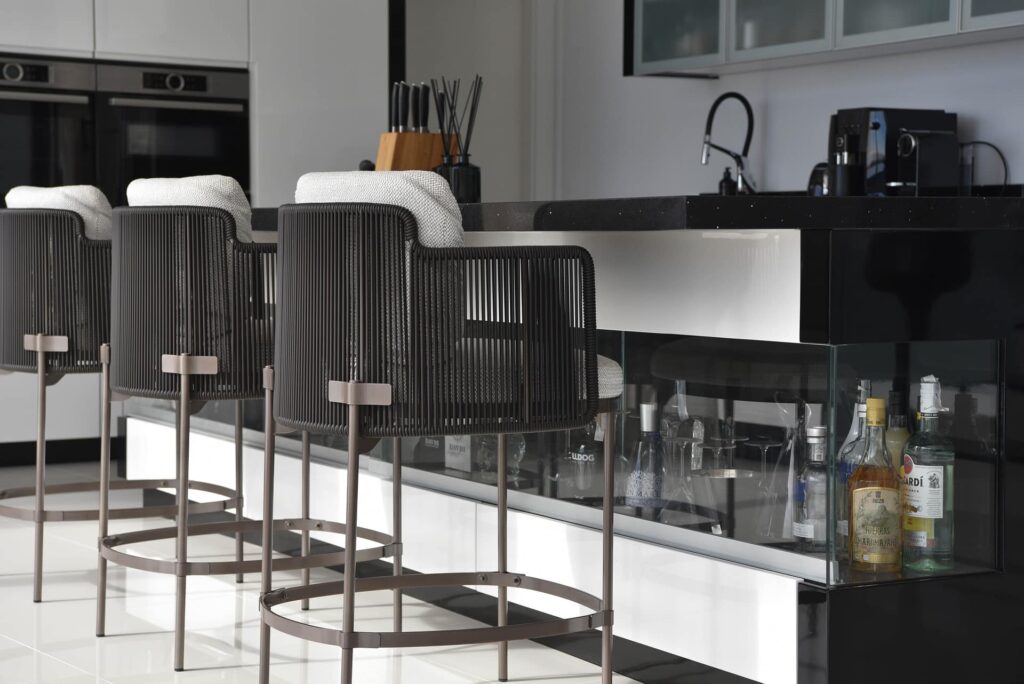 The outdoor areas are a true extension of this villa’s refined design, curated for luxurious coastal living.A beautifully designed summer kitchen and elegant firepit lounge create an exceptional atmosphere for entertaining and relaxation. The infinity pool, framed by natural stone and Mediterranean landscaping, completes the picture; a sanctuary for enjoying Costa Blanca’s year-round sunshine.