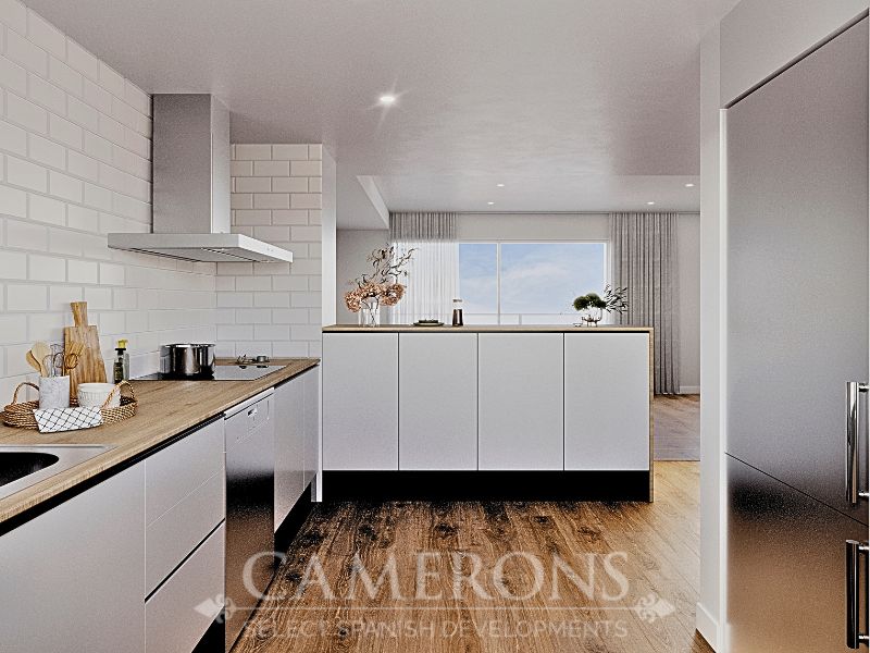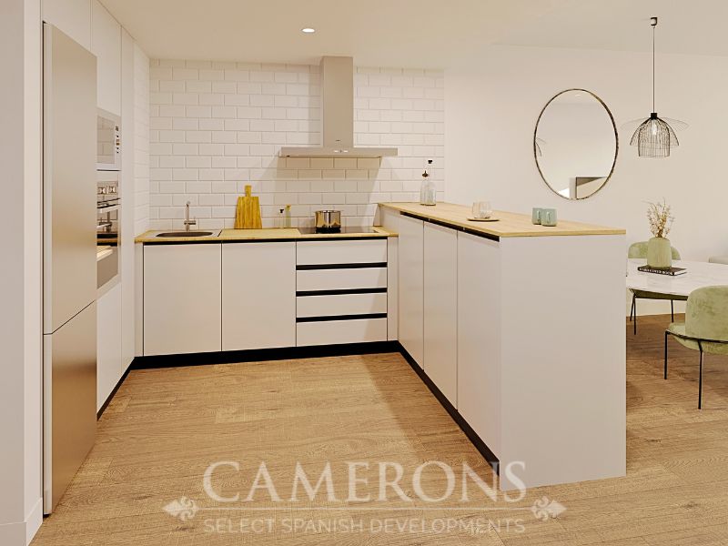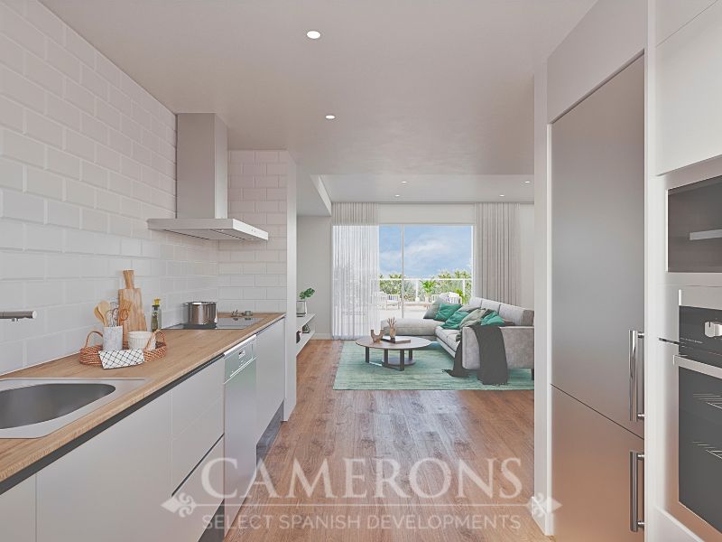 Spacious and bright interiors, feature an open-plan living room connected to the terrace and an integrated kitchen, maximising space and natural light.