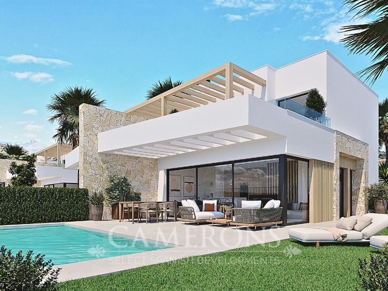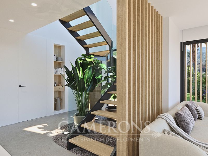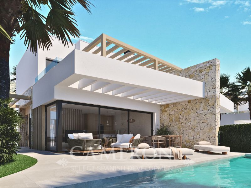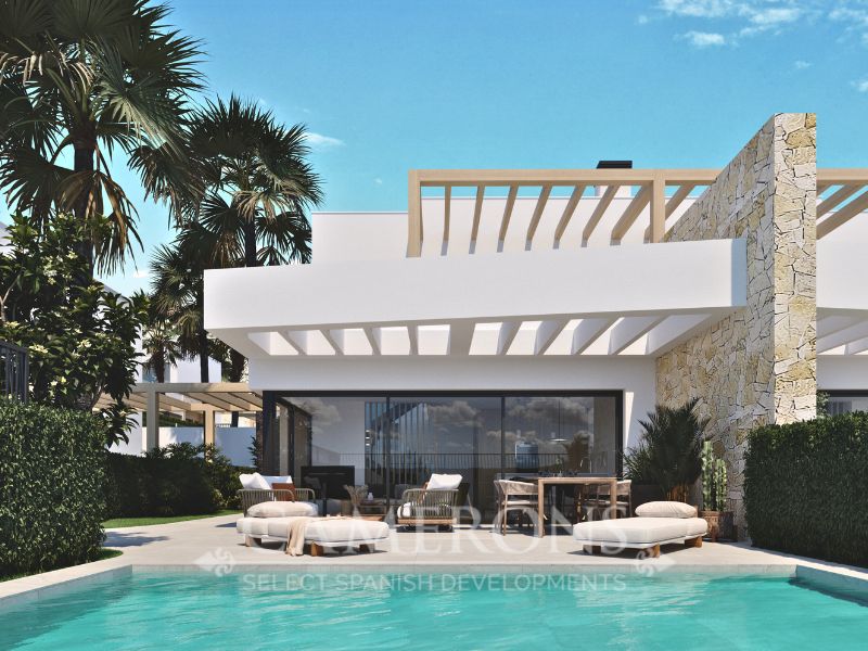 These modern, semi-detached homes have been stylishly designed and offer everything you need to fully enjoy Mediterranean living. Each property features a private garden with a swimming pool, a spacious sun terrace with stunning views, off-site parking, and an elegant living area.