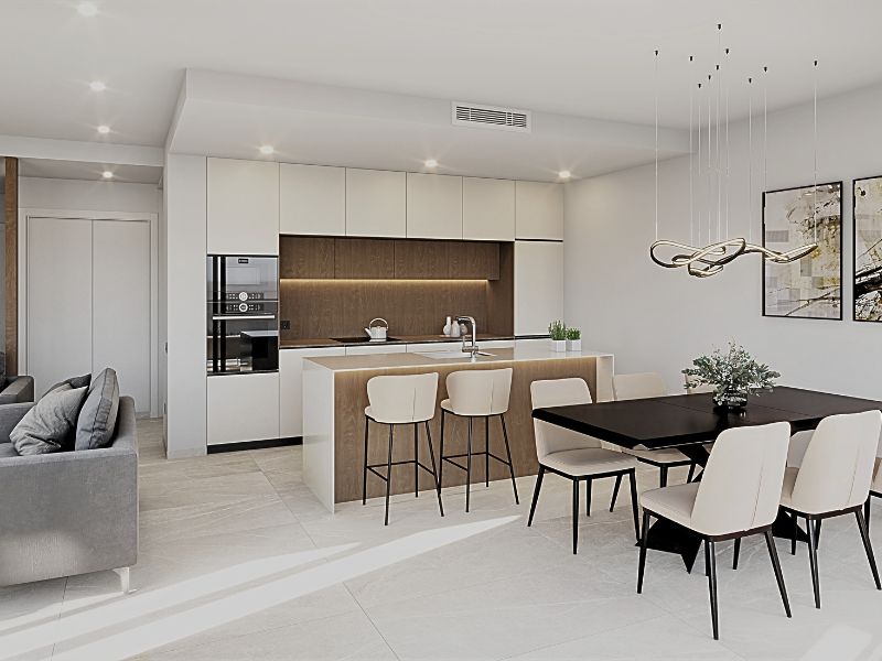 These newly released block of apartments has only 3 floors and facilities like the elevator and a nice communal pool. There are options, either 2 or 3 bedrooms, both with 2 bathrooms. Penthouses with private solarium and amazing golf and sea views.