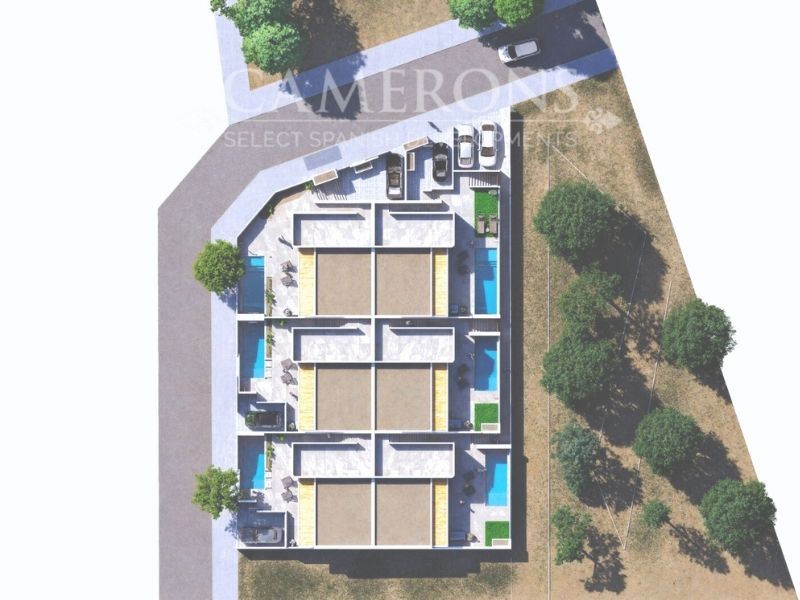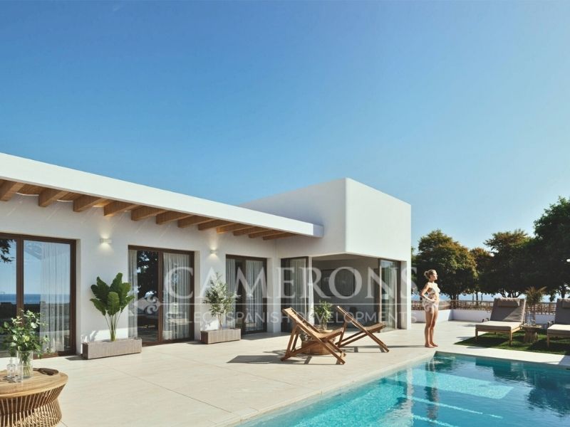 The development is made up of six one level terraced villas, Ibiza style, on independent plots each with a terrace, lounge area, parking and private pool. The homes consist of a living-dining room, a fitted kitchen, 3 bedrooms, 2 bathrooms, 1 pantry and a solarium with privileged views. All of them carefully designed with high quality materials to satisfy the most demanding customers.
