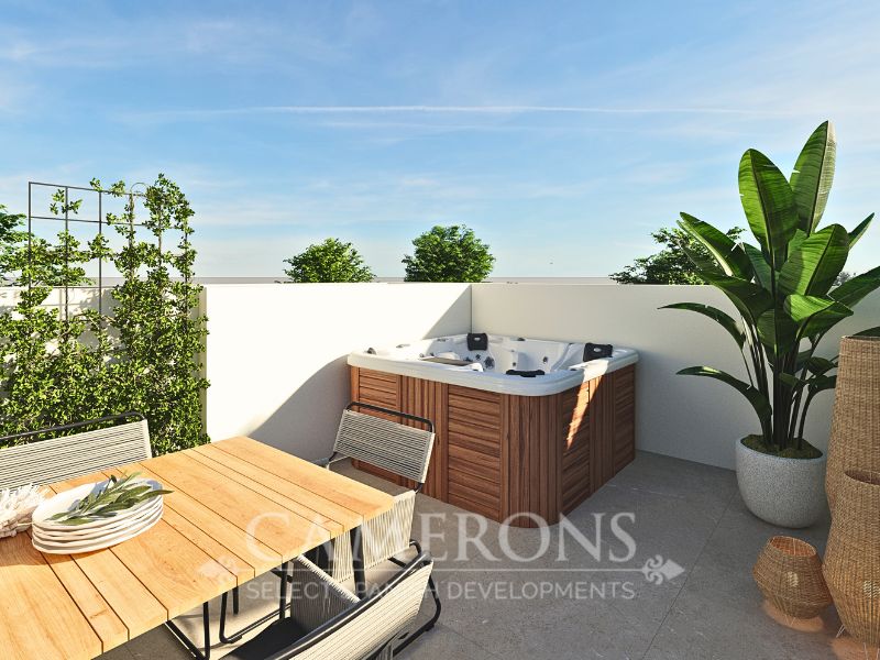 The contemporary design of these townhouses incorporates integrated LED lighting and the finest finishing materials, ensuring an elegant and functional home. Residents of Essence III can enjoy a communal pool, ideal for relaxing and socialising in a tranquil setting. Additionally, there is the option of adding a Jacuzzi or private pool to the solarium, turning each home into a true oasis of well-being and relaxation.