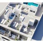 3 bedroom, 2 bath or 2 bedroom, 2 bath apartments with communal roof terrace with pool.