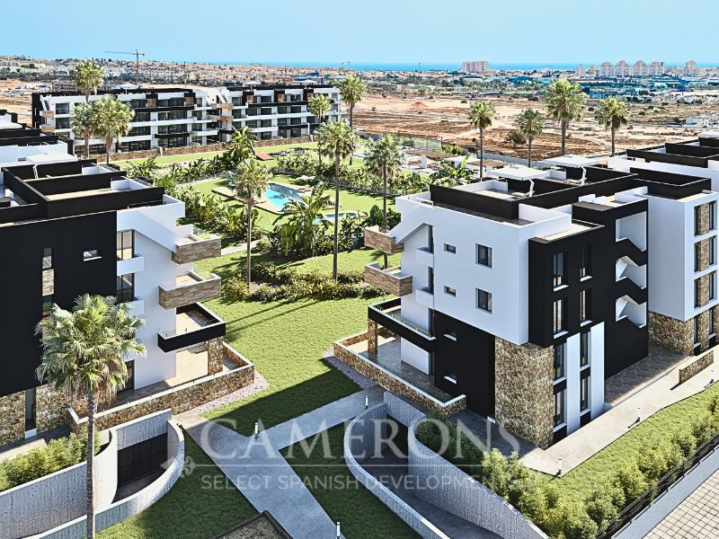 Here we have a project by one of the Costa Blanca South's most popular builders. The development will be made up of apartments with two bedrooms, two bathrooms and large terraces. You can choose between ground floor apartments with gardens, mid-floor units with balconies or penthouses with balconies and roof terraces.