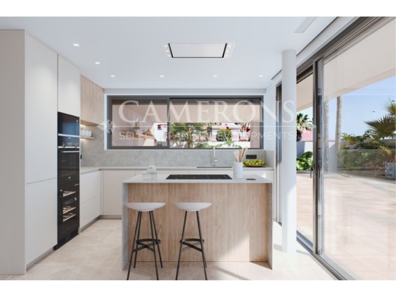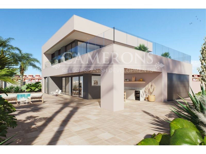 The villa is built with five bedrooms. Two of the bedrooms come complete with a bathroom and dressing room. The kitchen is fully finished, with high quality materials chosen by the buyer, including the appliances. Following an open concept, the dining room is surrounded with large windows, providing a source of pleasant day light, with direct access to the swimming pool and finished gardens with illumination, irrigation and local vegetation.