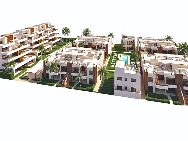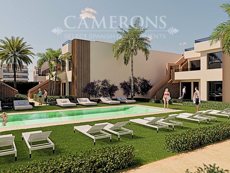 The NOSTRUM LIVING bungalows have 2 or 3 bedrooms and 2 bathrooms on the ground or the top floor. The ground floor properties have a front garden as well as a rear patio. Some ground-floor bungalows also include a parking area in their private garden. The upper floor properties enjoy a front terrace and a large solarium with beautiful views of the golf course and the mountains. The complex enjoys garden areas with Mediterranean and tropical plants and a swimming pool.