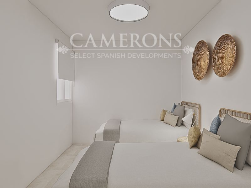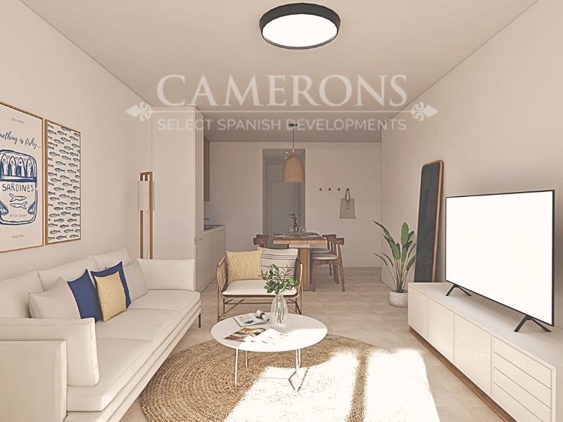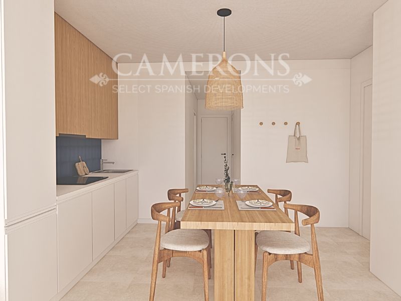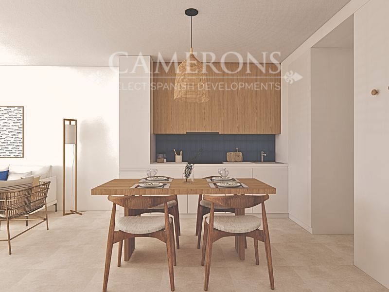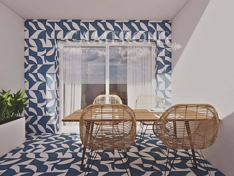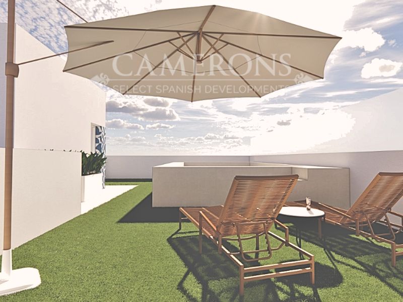 The apartment complex is spread over three floors with a total of eight apartments. Only one apartment with one bedroom on the ground floor, two apartments with 3 beds/2 baths on the top floor and the rest are all 2 beds 2 baths, All them with a modern layout in a stylish design. Each apartment has a private terrace, perfect for enjoying the Spanish climate.