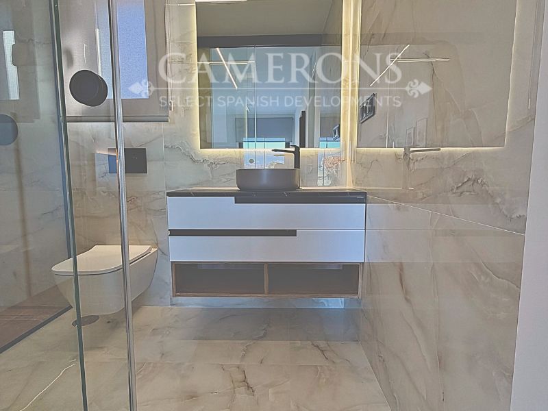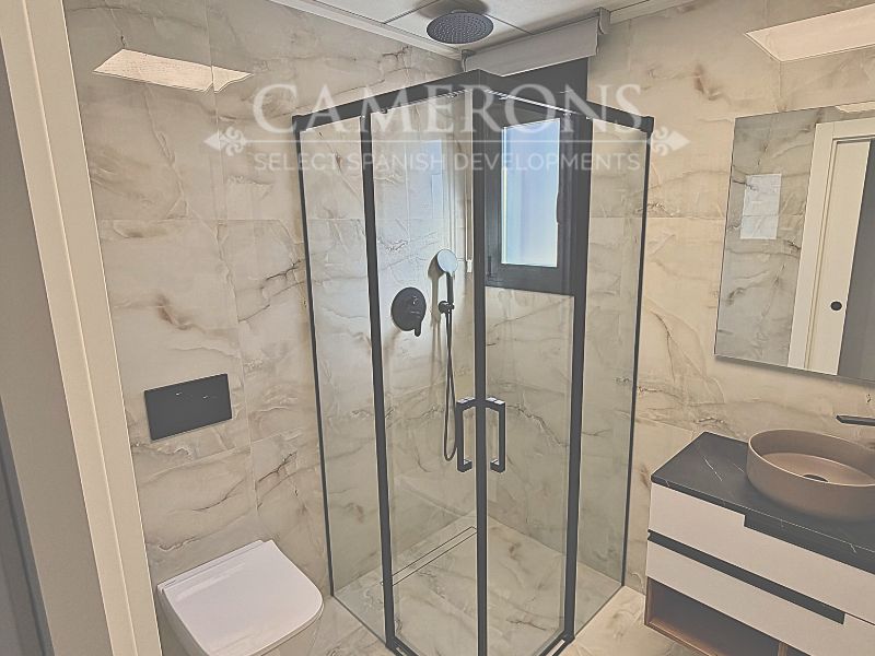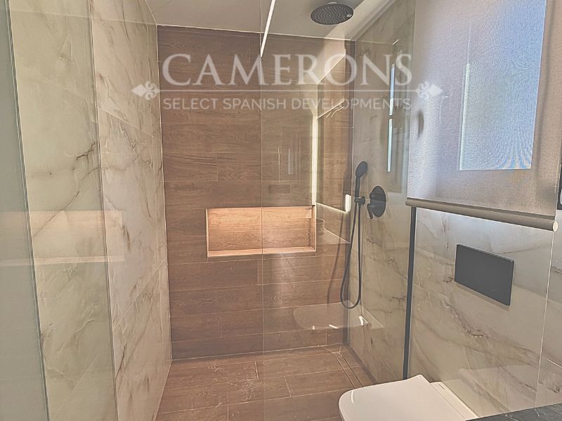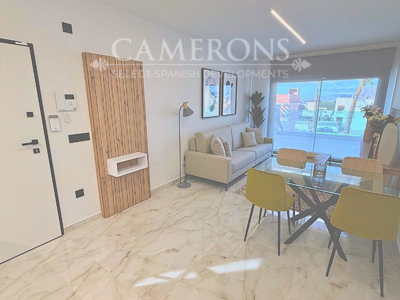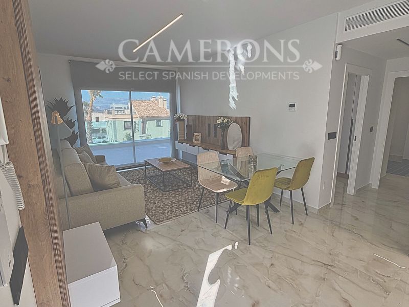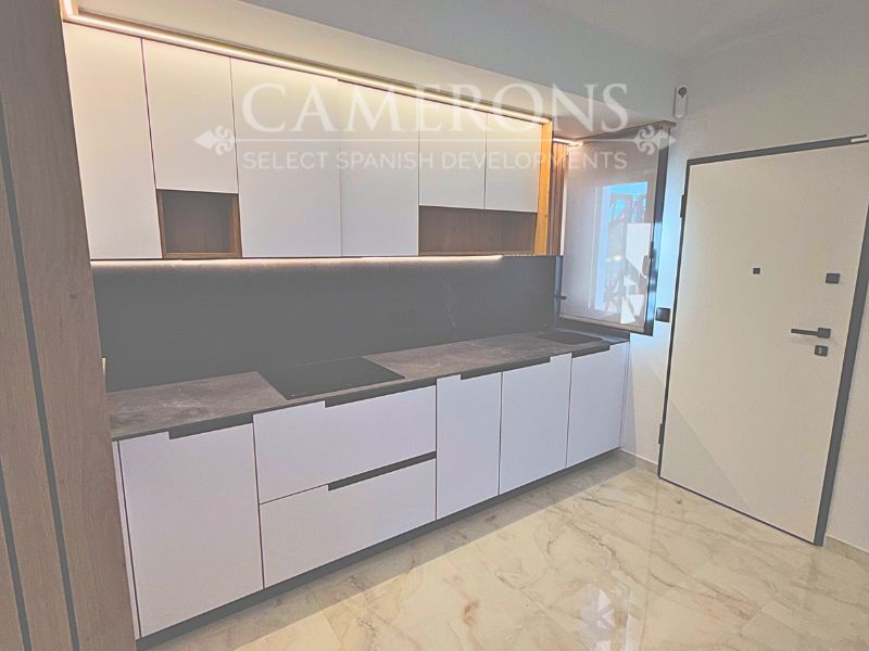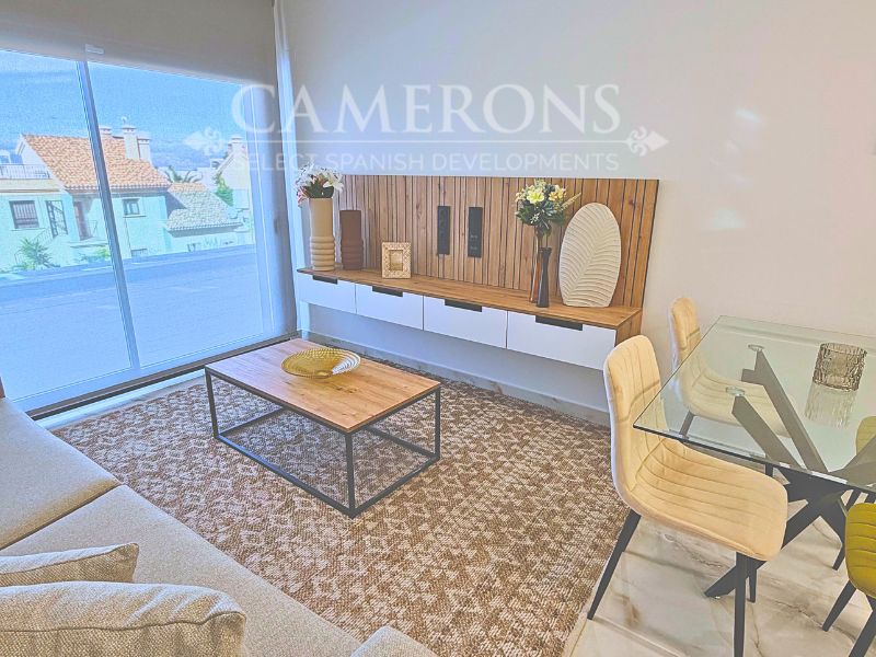 Open plan lounge and kitchen, with a dining area. The double windows in the lounge open onto a terrace and pool area. These properties bring the focus on the use of long-lasting materials and the highest quality finish.