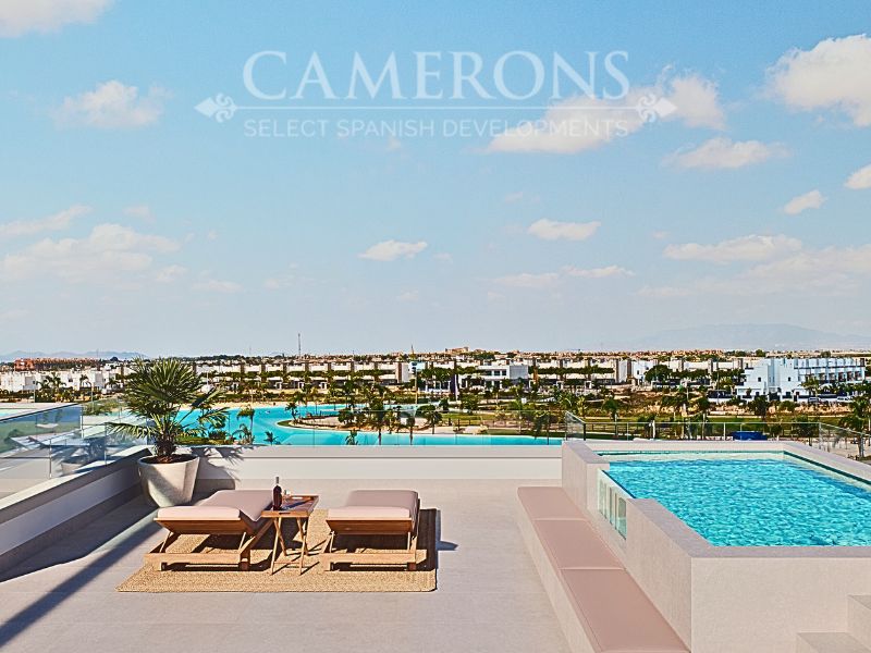 New apartments with communal pool in the Santa Rosalia Lake Resort, on this man made lagoon in an excellent location, just 4km’s from the beaches of the Mar Menor and only 1km from the 18 hole golf course.