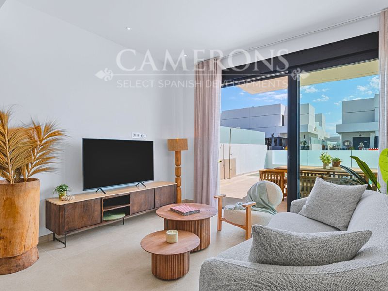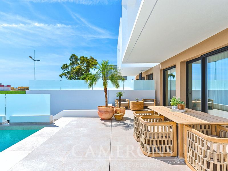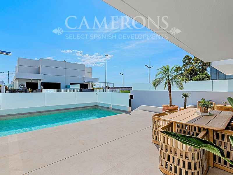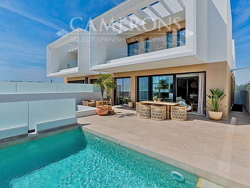 Within the complex of this brand-new development of modern, high quality, semi detached villas, normally with 3 bedrooms, we are happy to present you this great option of the same model but with 2 en-suite bedrooms and a guest toilet, with private pool and off-street parking.