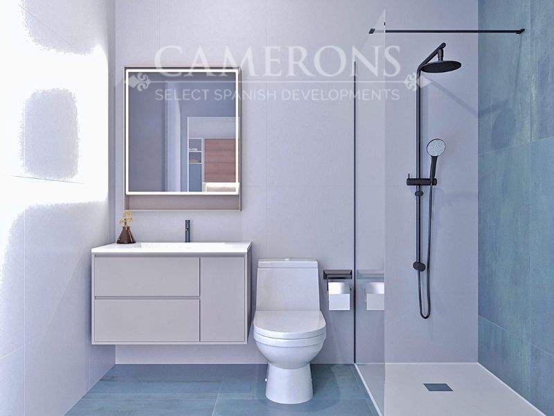 Fully fitted bathrooms with suspended toilet, shower screens, vanity unit, mirror with light and rainfall shower.