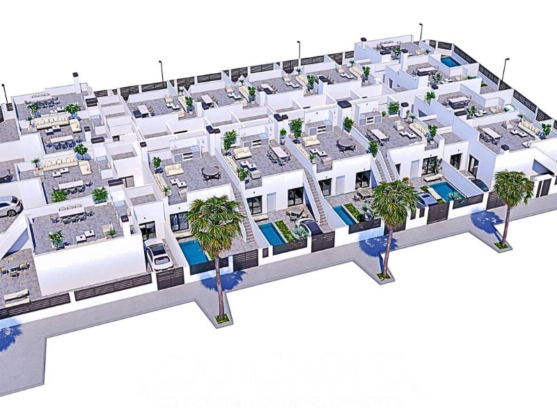 We are glad to inform about the launching of a 16 new townhouses within the development of El Alba Residencial, a luxury complex of villas with both private and communal pools, garden area and solarium, in Roldan, Murcia.