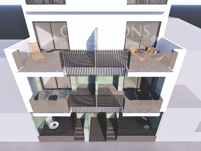 The apartment complex is spread over three floors with a total of six apartments. The modern apartments offer two bedrooms, one or two bathrooms and a modern layout in a stylish design. Each apartment has a private terrace, perfect for enjoying the Spanish climate.