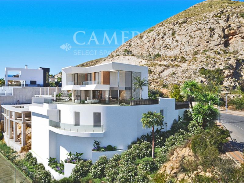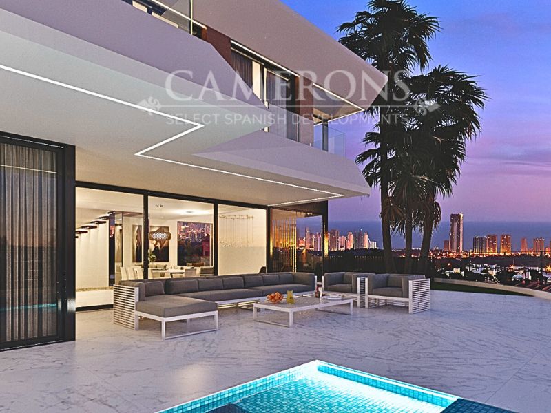 This fantastic villa is located in Finestrat, that, thanks to the privileged location of the plot, demonstrates beautiful panoramic views of the skyline of Benidorm and the Mediterranean Sea.