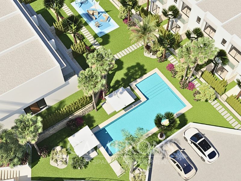 The properties have 3 bedrooms, 3 bathrooms (2 of them en suite), and living/dining room with open plan kitchen. The residential complex offers access to a communal swimming pool and a children’s play area