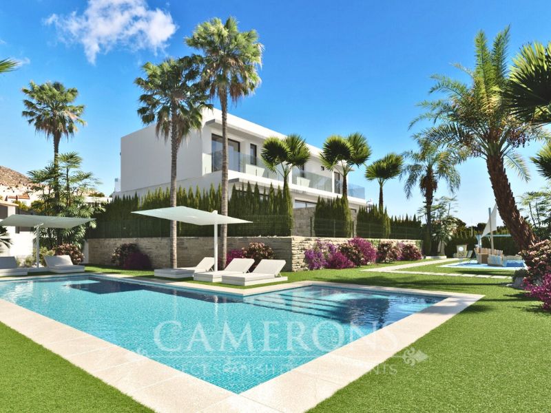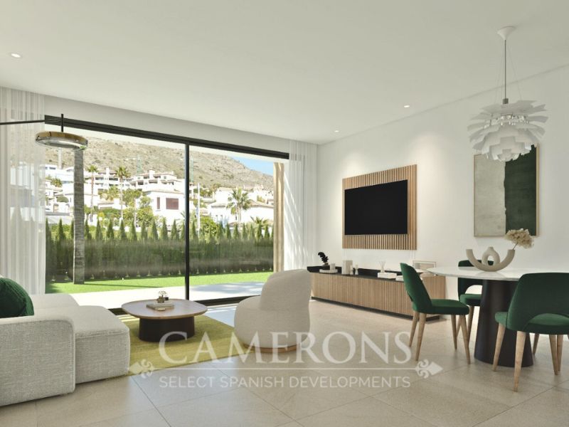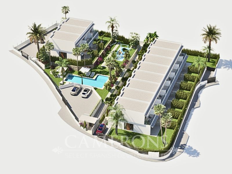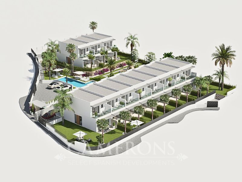 Terraced villas with sea views and communal swimming pool, next to Benidorm, in Costa Blanca North.