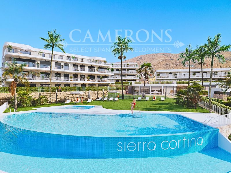 Sierra Cortina is a residential complex located in the privileged area of Finestrat, consisting of 2 and 3 bedroom apartments both with 2 bathrooms, large external terrace, and 3 bed, 2 bath villas with a private pool.