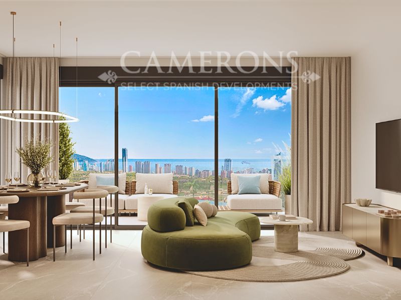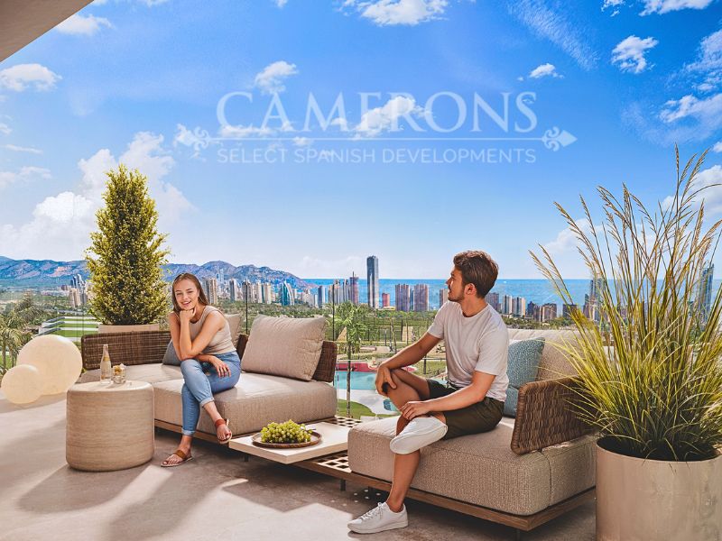 Between the impressive Puig Campana mountains and the warm waters of the Mediterranean Sea in Benidorm, each dwelling includes bright apartments with spacious terraces; providing plenty of light inside.