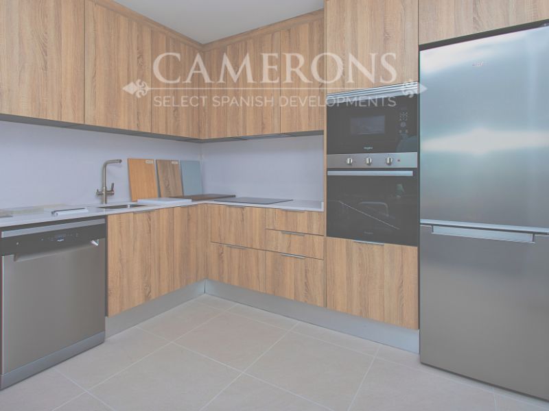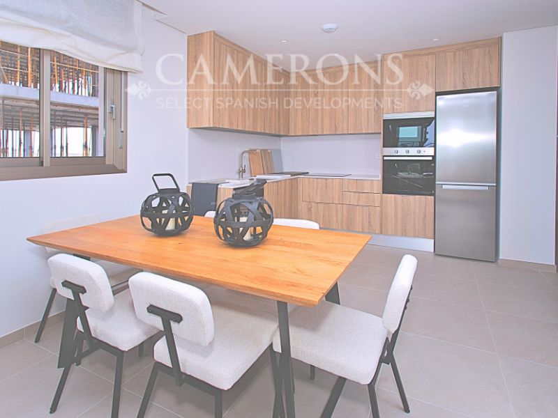 Open plan lounge and kitchen, with a dining area. The double windows in the lounge open onto a terrace, these properties bring the focus on the use of long-lasting materials and the highest quality finish.
