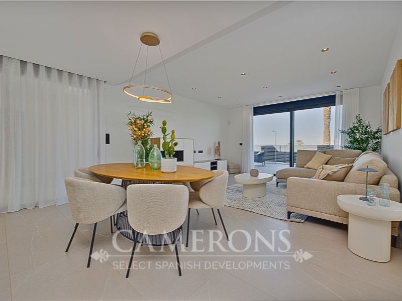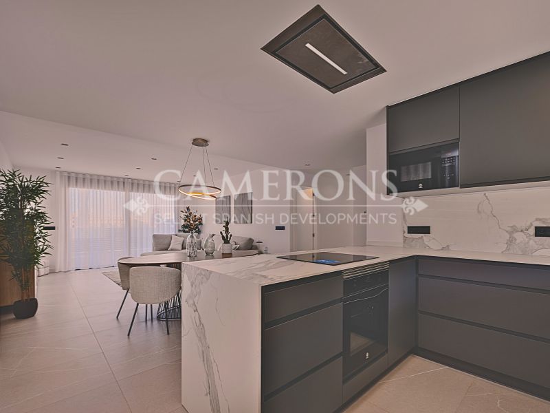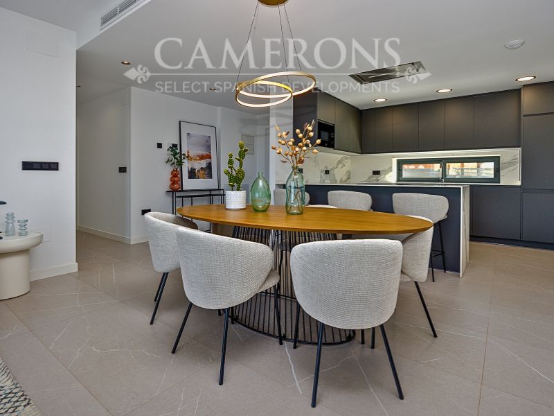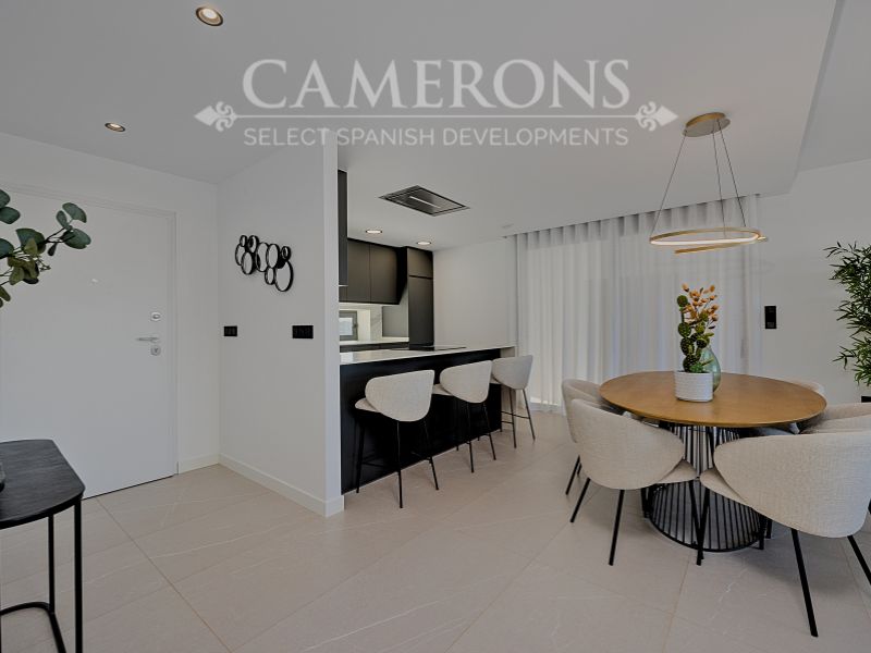 The properties are built to the highest quality, with an open plan kitchen, that has direct access from the property to the pool area and terraces. With 3 bedrooms and 2 bathrooms, the villas each have their own private pool, solarium and underground parking and storage and are only 35 minutes from Alicante international airport.