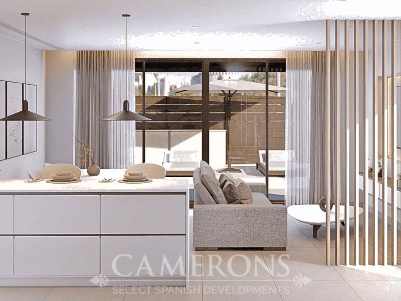 The property comprises of a modern open plan kitchen with spacious lounge/dining area with patio doors leading out onto the private terrace, a double bedroom and a guest bathroom.