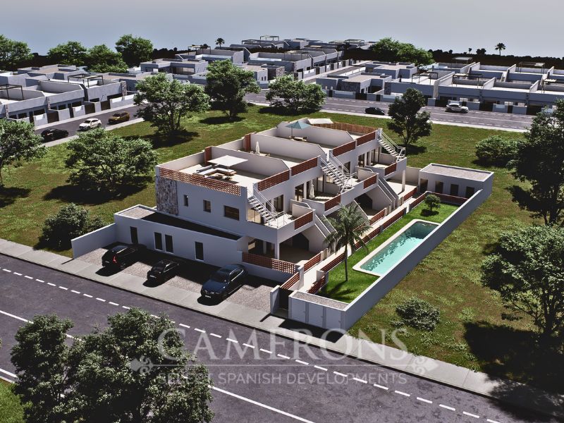 Located in the charming town of Pilar de la Horadada, this residential complex offers an exclusive selection of 4 ground floor and 4 top floor bungalow apartments, designed for those seeking a modern, bright, and comfortable home.