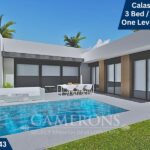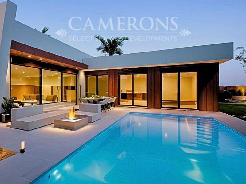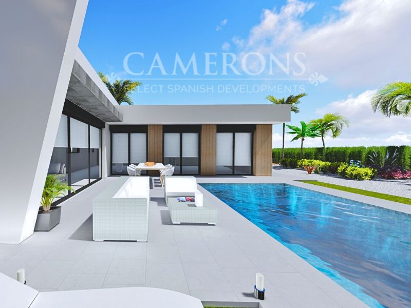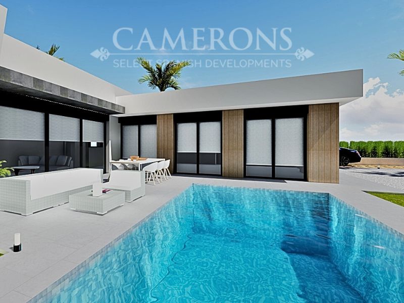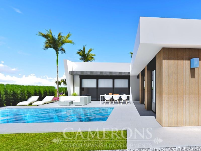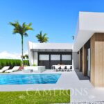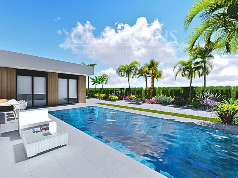 Modern detached one-level villas with private pool, 2 (Azahar) or 3 bedrooms and 2 bathrooms, utility room (Jazmin model).