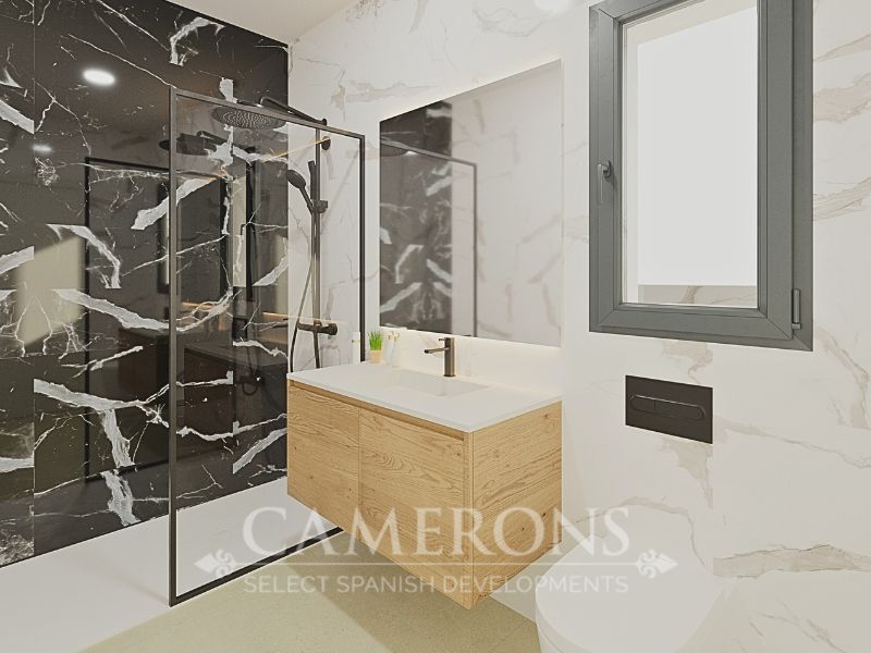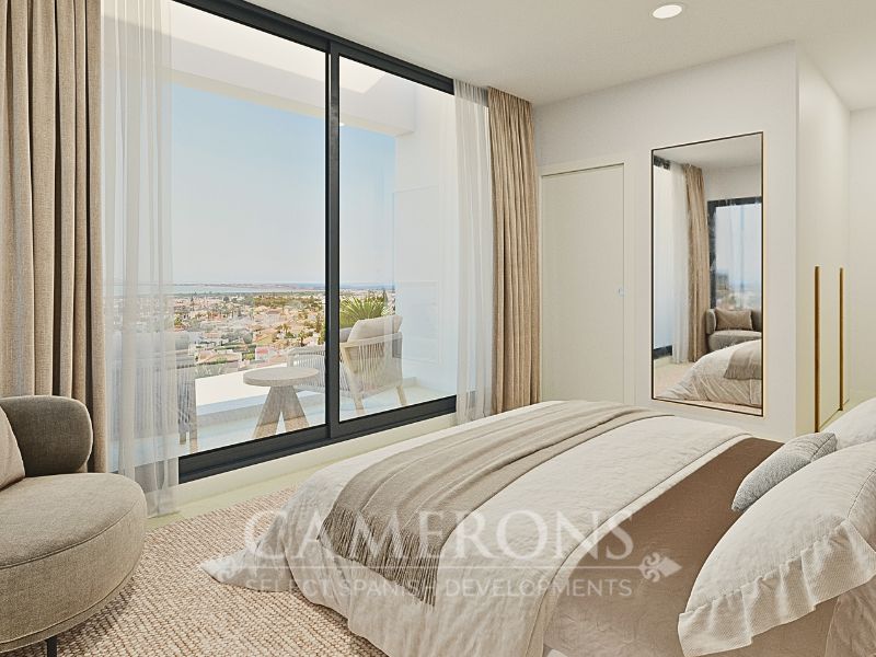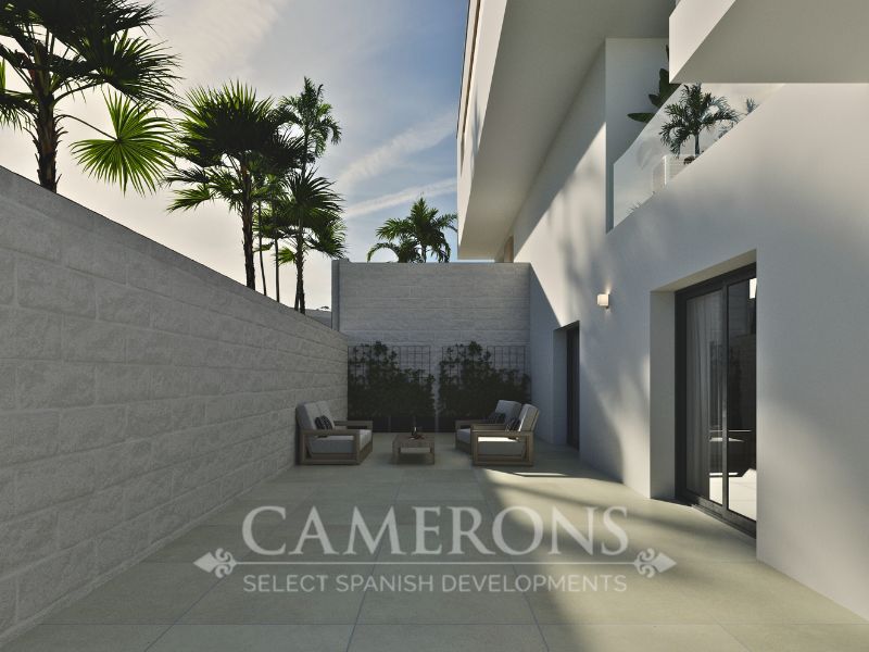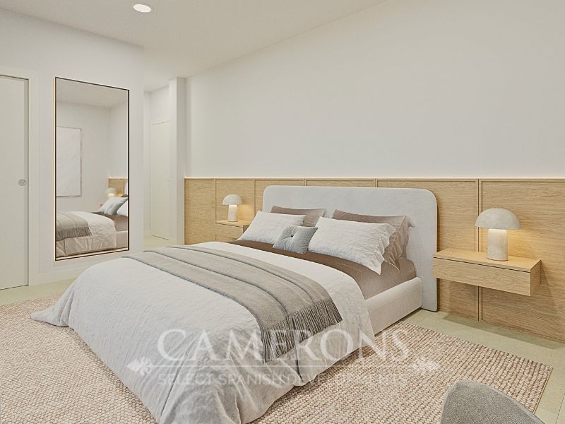 A staircase leads up to the first floor where you will find the large master bedroom with fitted wardrobes, en-suite bathroom and private sun terrace, a further double bedroom with fitted wardrobes and en-suite bathroom. There is also a large upper sun terrace.