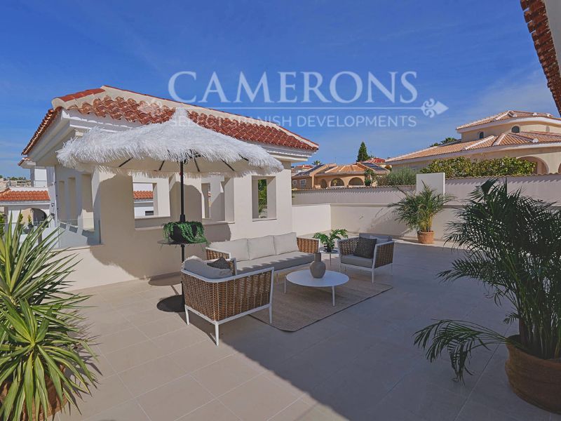 This villa has 3 bedrooms and 2 bathrooms, a spacious living area with a double height ceiling in the dining room providing more light and a feeling of space and you can also enjoy its outdoor areas such as the solarium and the garden with a private pool.
