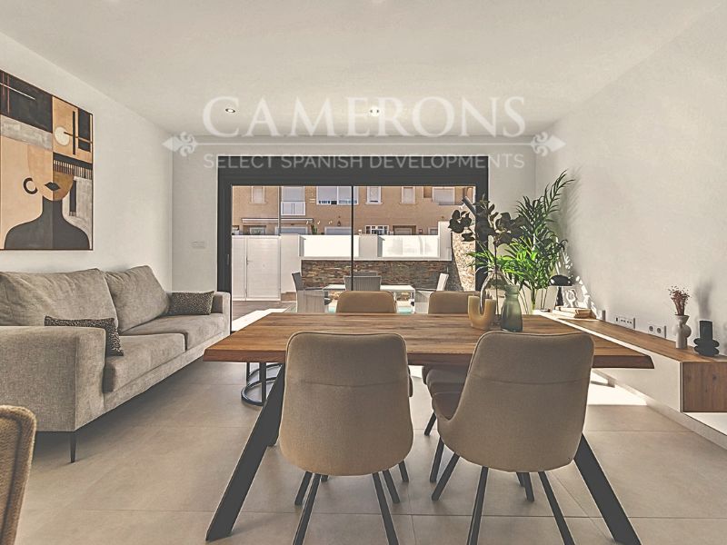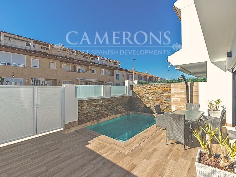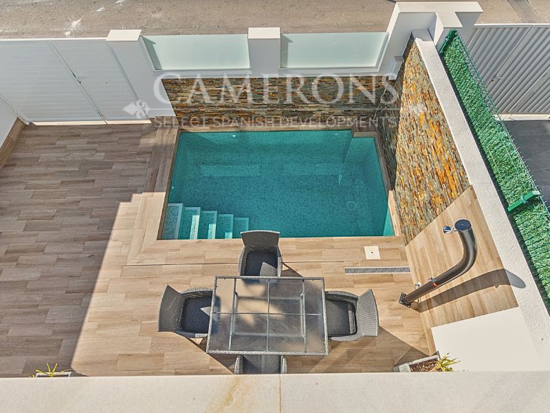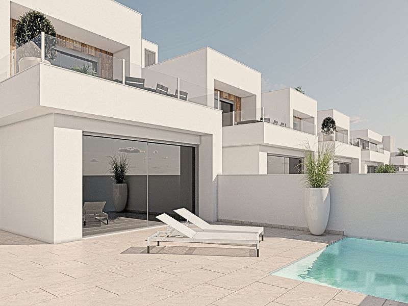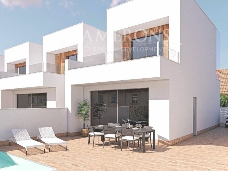 A new small development of only five, modern design properties, each with 3 bedrooms and 2 bathrooms, private pool and garage. Built in a new residential area close to the town centre of San Pedro Del Pinatar and not far from the beaches of Lo Pagan.