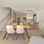 On the ground floor the is one bedroom and a shared bathroom, an open plan kitchen and living area with large patio doors leading to your terrace with a private pool. On the first floor there are a further two good sized bedrooms and a bathroom and a big 20m2 terrace to access the solarium.